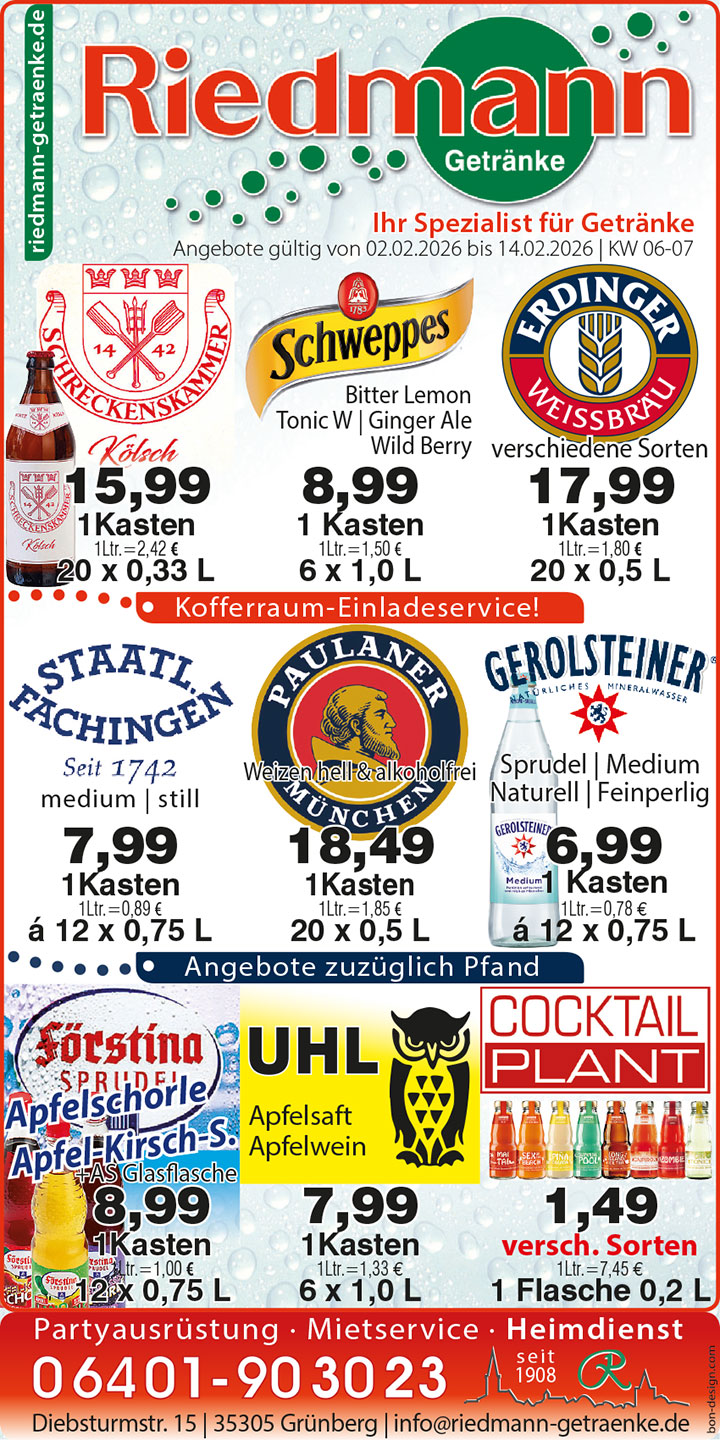 Das ist natürlich so nicht wahr: Obwohl wir Dir in unseren Getränkemarkt 100 Bier-, 50 Wasser-, 40 Limonaden- und 50 Saftsorten anbieten, dazu einige Weine und ausgesuchte Spirituosen, verstehen wir sehr wohl auch etwas von anderen Dingen, inkl. Lieferdienst- oder Veranstaltung- & Event-Equipment!